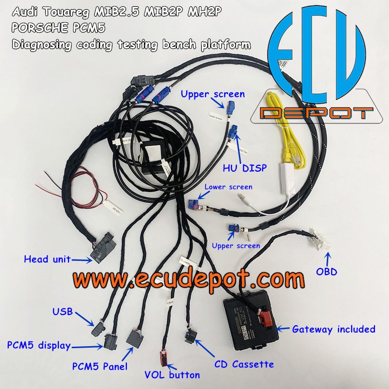 Applied to test, diagnose, coding, program the Audi, Volkswagen Touareg MIB2P head unit, PORSCHE PCM5 Head unit on bench. (MIB3 Head unit only support testing, unable to diagnose or program ).
